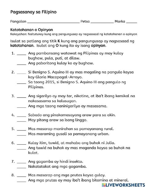 Sa bawat pagkakataon na tayo ay nagbibigay ng opinyon, mahalaga rin na alamin natin kung ito ay tama o mali. Ang pagkakaroon ng tamang kaalaman sa isang paksa ay magpapahalaga sa ating opinyon at higit na magpapadala ng tumpak na mensahe sa mga nakikinig o bumabasa nito. Kung hindi natin alam kung tama o mali ang ating sinasabi, maaari nating mapahiya ang sarili natin at maaring makapagbigay pa ng maling impormasyon.